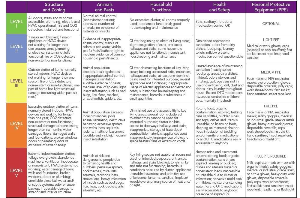 ICD Clutter-Hoarding Scale is a FREE downloadable, environmental assessment tool, available on the website here. The tipping point for hoarding BEGINS at Level III and continues upward through Level V.